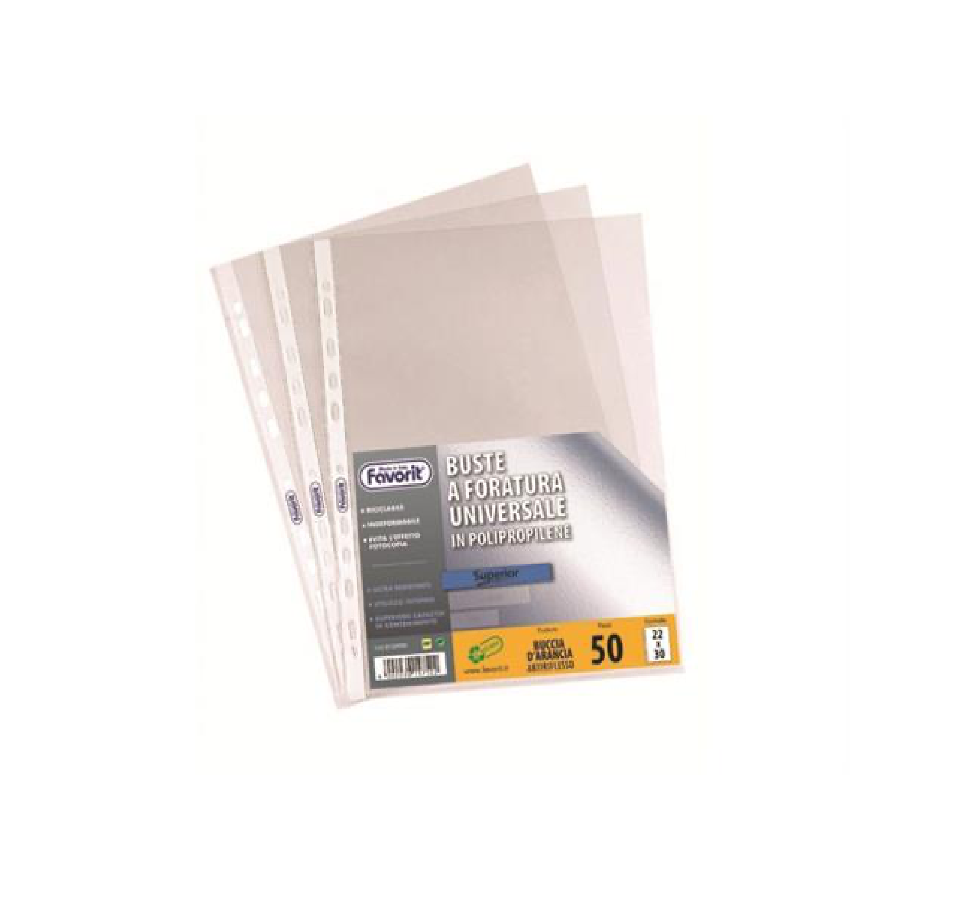 Mantieni i tuoi documenti sempre in ordine con le buste forate Buccia d'Arancia Favorit Superior in formato utile 22 x 30 cm, perfette per fogli A4.