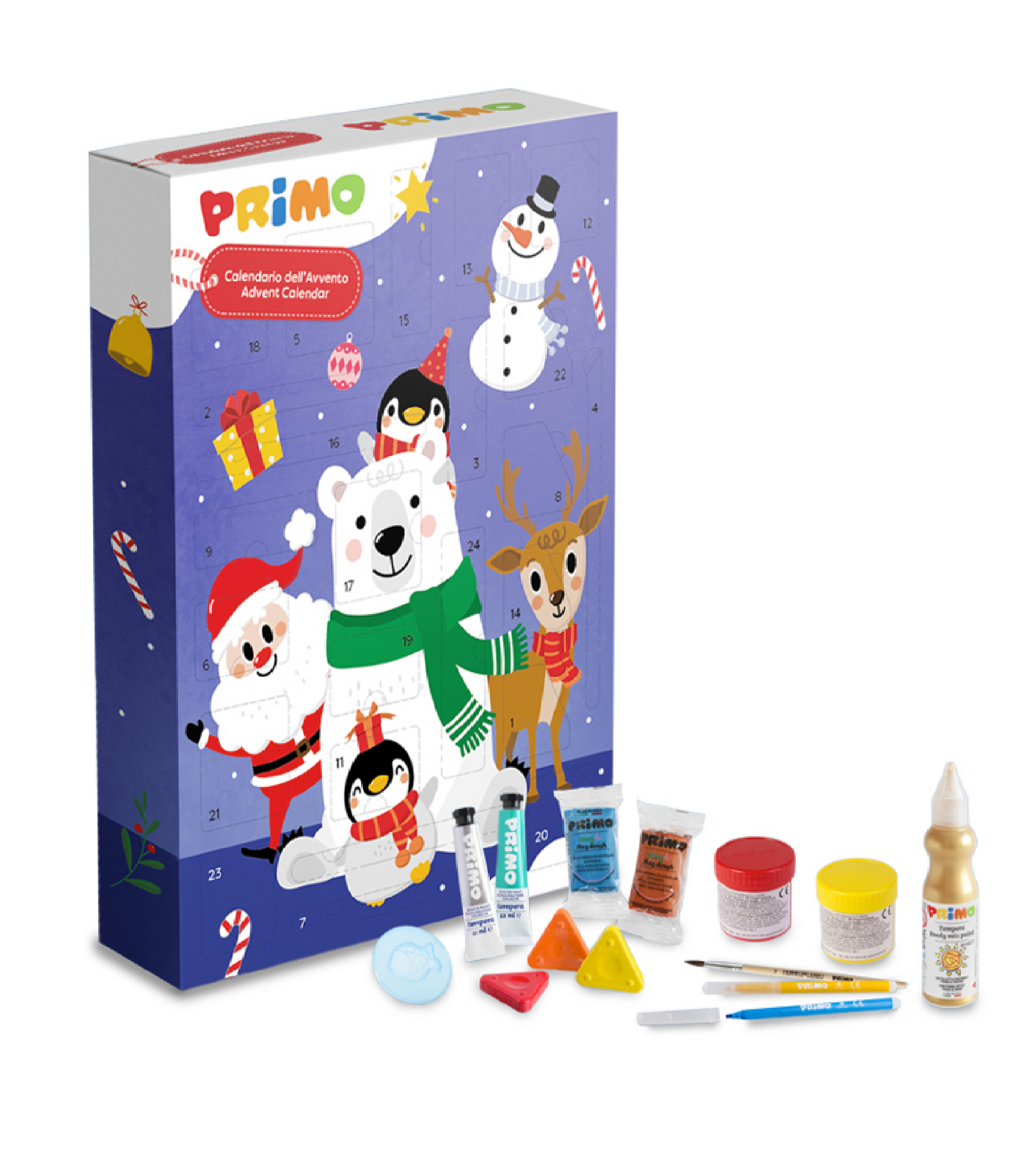 Il Calendario dell’Avvento PRIMO è pensato per accompagnare i bambini nel magico conto alla rovescia verso il Natale, offrendo ogni giorno un’attività creativa diversa. All’interno, materiali di alta qualità firmati PRIMO: colori, paste da modellare, tempere, pennarelli e accessori per dare forma a idee sempre nuove.