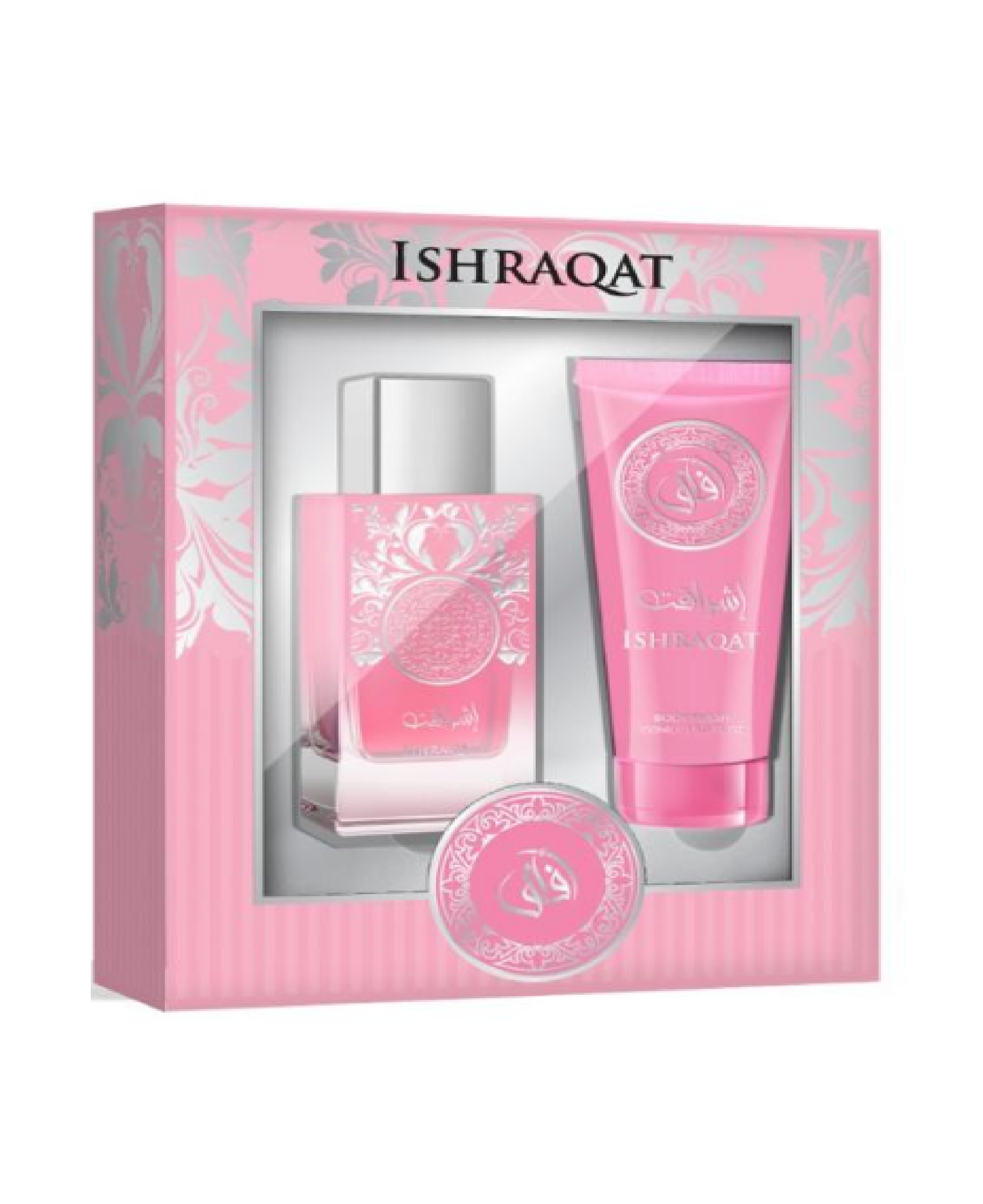 Illumina la tua routine quotidiana con AFAQ Ishraqat Gift Set, un cofanetto elegante e completo pensato per chi desidera freschezza, cura e profumo in un’unica esperienza.