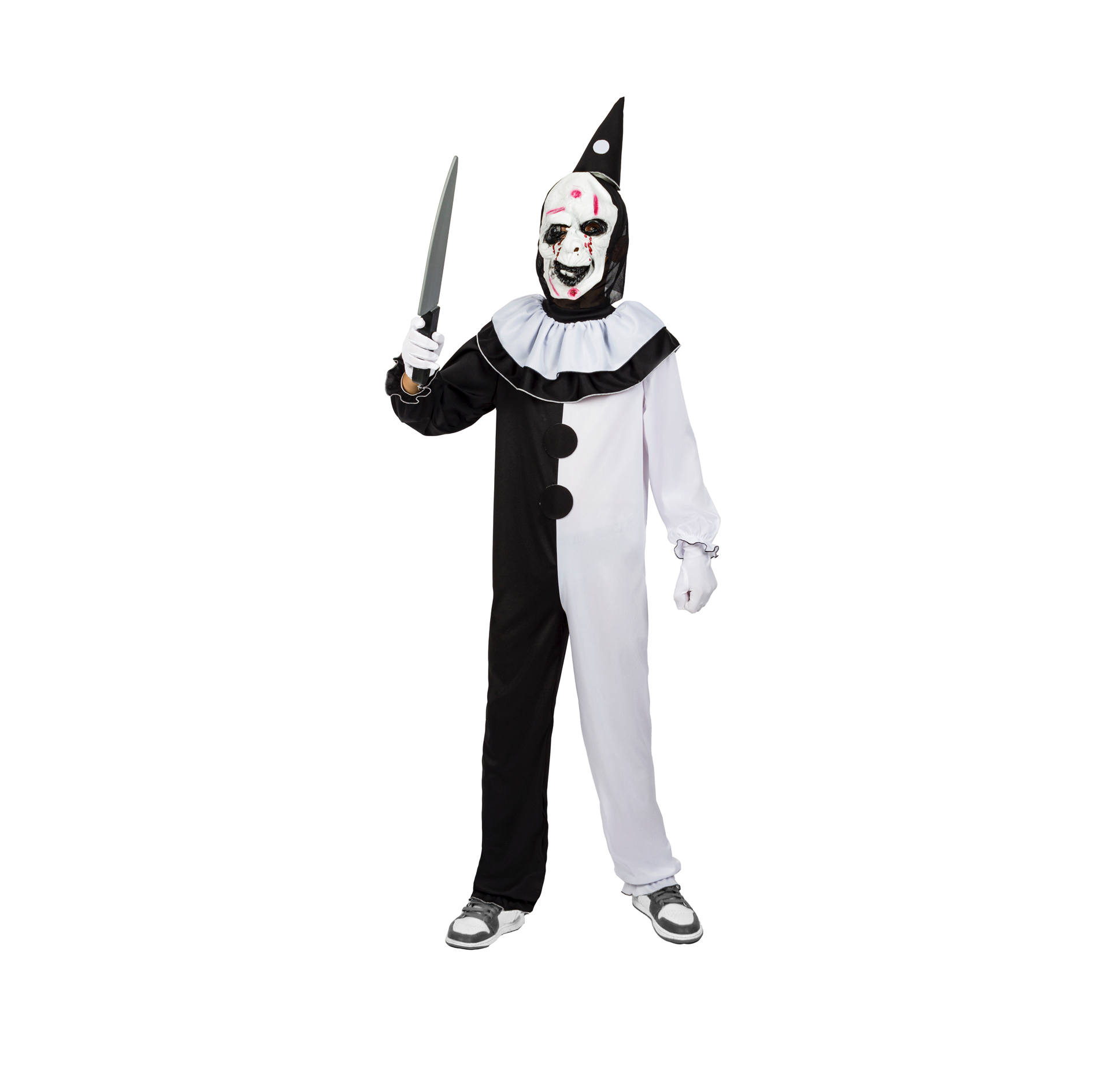 Il Costume Evil Clown è disponibile in 4 taglie, da 5/6 a 11/12 anni, ed è perfetto per creare un look spaventoso per Halloween, Carnevale o feste a tema. L'articolo comprende una tuta, una maschera e un cappellino, per un effetto clown da paura completo. La tuta è progettata per essere comoda e spaventosa, mentre la maschera aggiunge un tocco di inquietante realismo. Ideale per travestimenti, giochi di ruolo e eventi spaventosi.