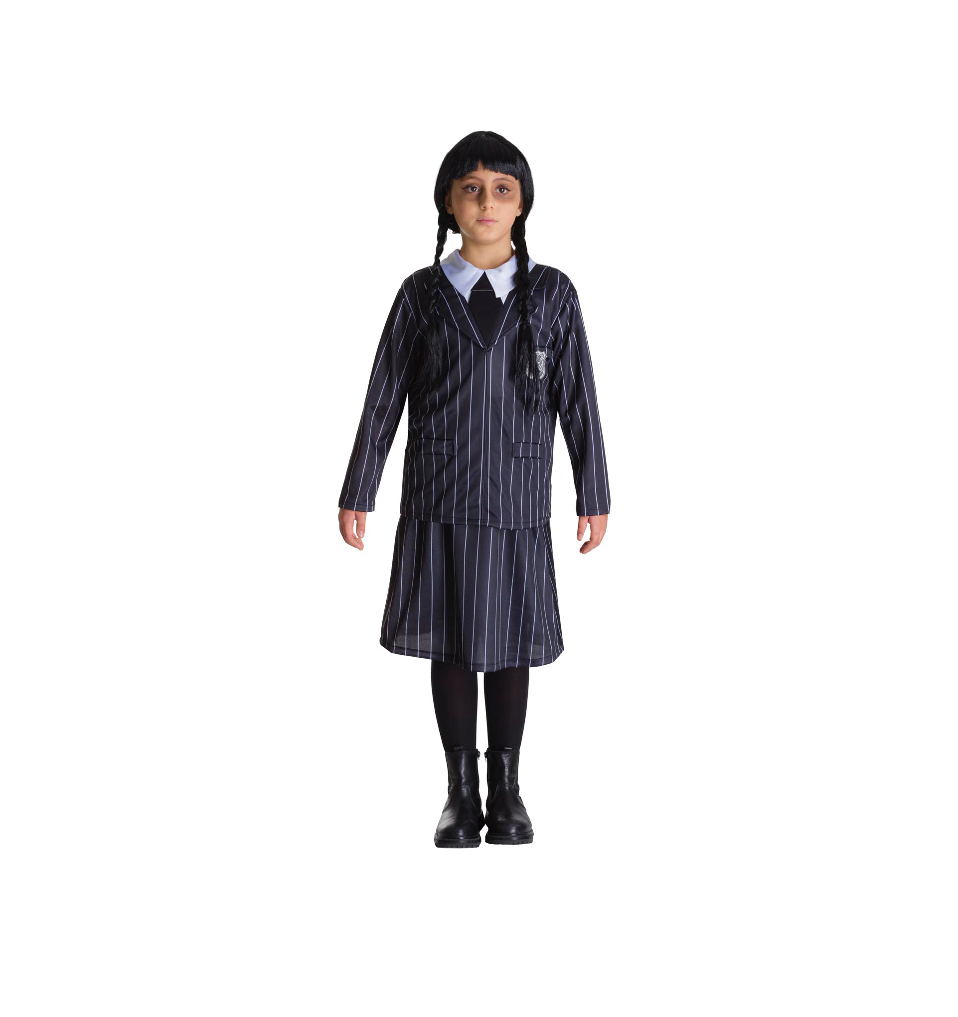 Ispirato allo stile inconfondibile della giovane protagonista della serie, il Costume Mercoledì School è perfetto per ogni piccola fan del genere gotico!