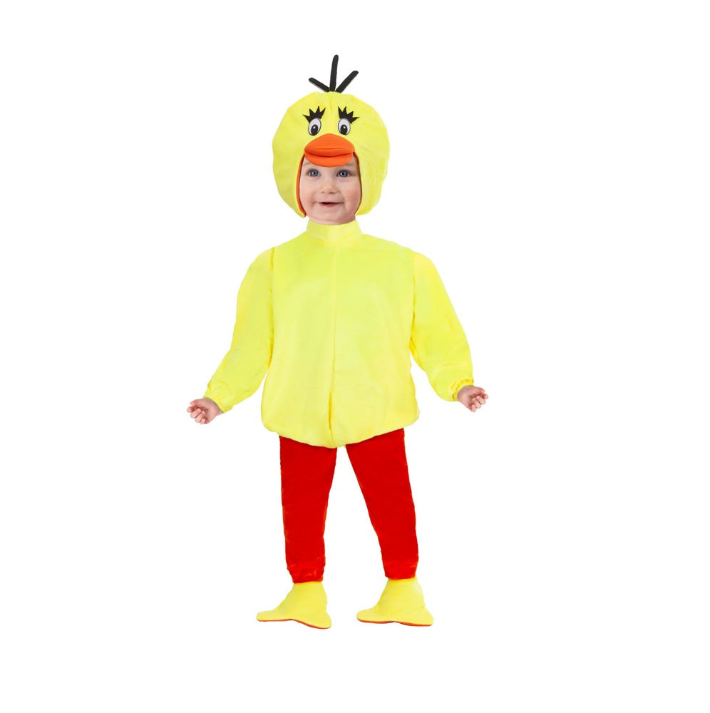 Il costume da Pulcino è disponibile in 4 taglie, da 7/9 fino a 19/24 mesi. L’articolo include una morbida tutina in velluto con chiusura a zip sul retro, un simpatico cappello con becco e cresta, e comodi copriscarpe coordinati. Il design tenero e confortevole lo rende perfetto per feste di compleanno, travestimenti, feste a tema, Carnevale e sfilate in maschera.