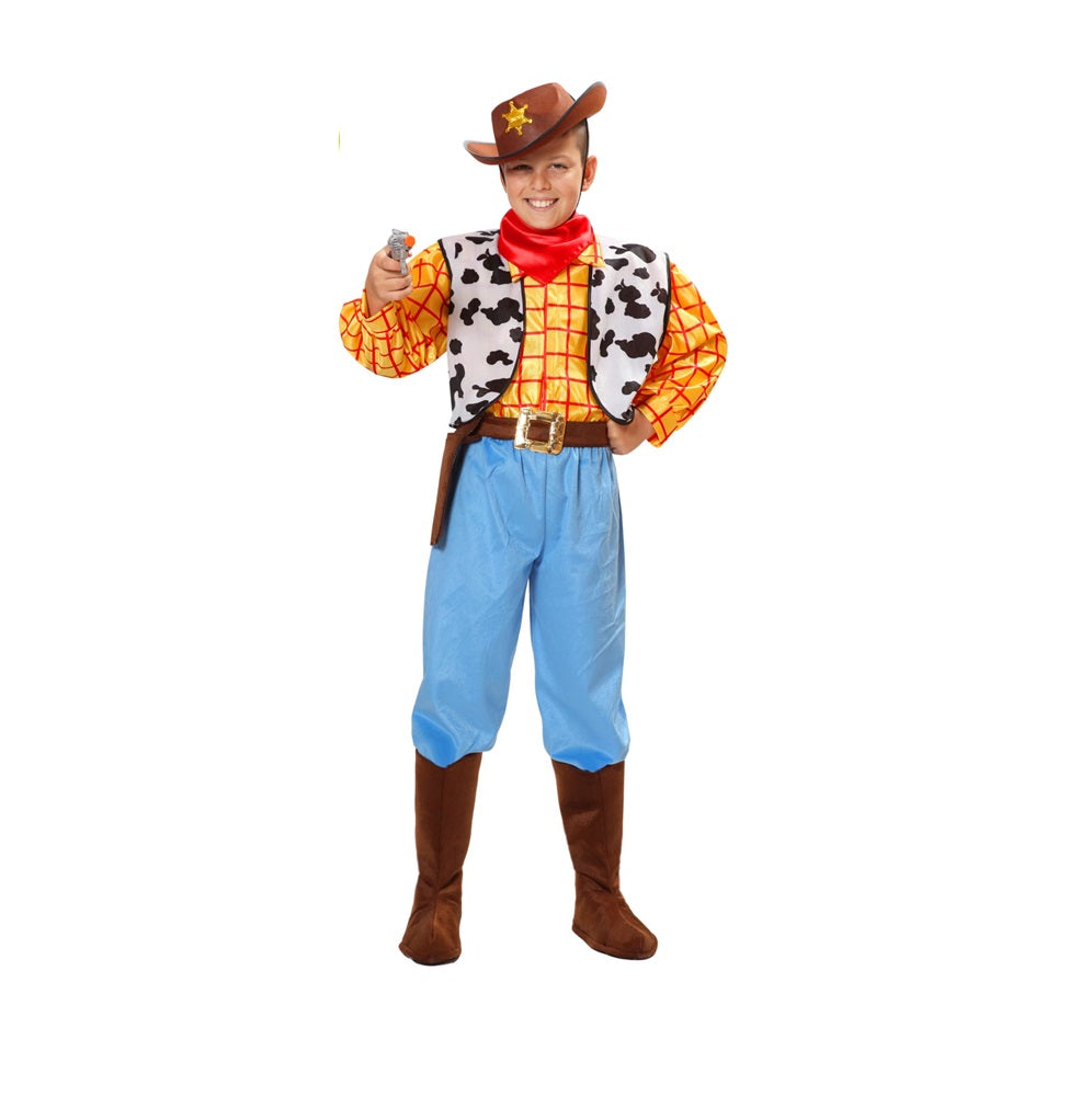 Il costume da Cow Boy Woody è disponibile in 5 taglie, dalla 5/6 alla 12/13 anni, ed è pensato per trasformare ogni bambino in un vero eroe del Far West. L’articolo comprende cappello, pantalone, maglietta, gilet, cintura con fibbia, copristivali, pistola giocattolo e foulard.