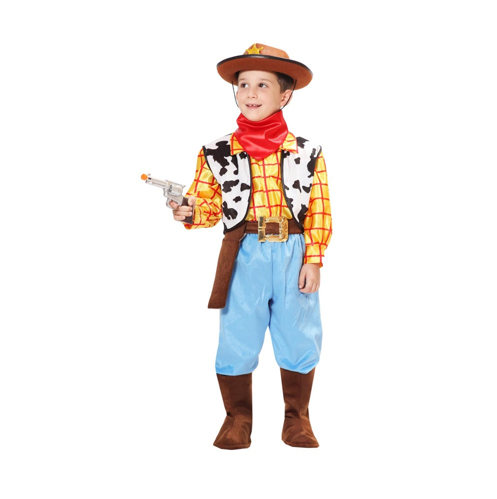 Il costume da Cow Boy Woody è disponibile in 3 taglie, da 13/18 fino a 25/36 mesi. Il set comprende cappello, pantalone, maglietta, gilet, copristivali e foulard, per un look western completo e divertente. Tutti gli elementi sono realizzati in tessuto 100% poliestere. Ideale per feste di Compleanno, Travestimenti, feste a tema, Cosplay e sfilate di Carnevale.