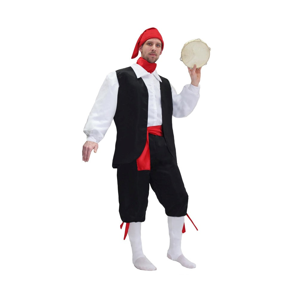 Il costume Tarantella per uomo è disponibile in 4 taglie, dalla M alla XL. L'articolo comprende tutto il necessario per un look tradizionale e d'effetto: cappello, foulard, panciotto, camicia, fusciacca, pantalone e tamburello.