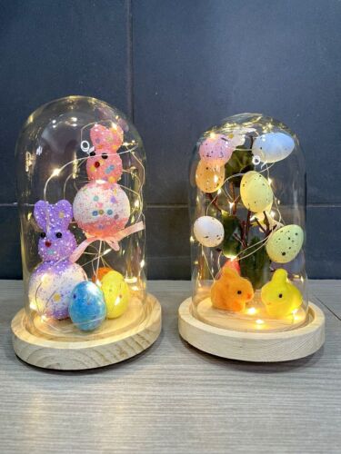Al suo interno, dolcissimi coniglietti sono racchiusi in una cupola di vetro illuminata da luci LED, per un effetto luminoso e incantevole, perfetto per ogni angolo della casa.