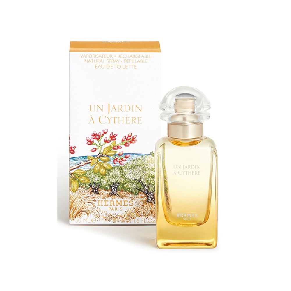 Creata da Christine Nagel, parfumeur della Maison Hermès, Un Jardin à Cythère è un’eau de toilette luminosa e sorprendente: un giardino che non è né verde né fiorito, ma che brilla del colore del sole.