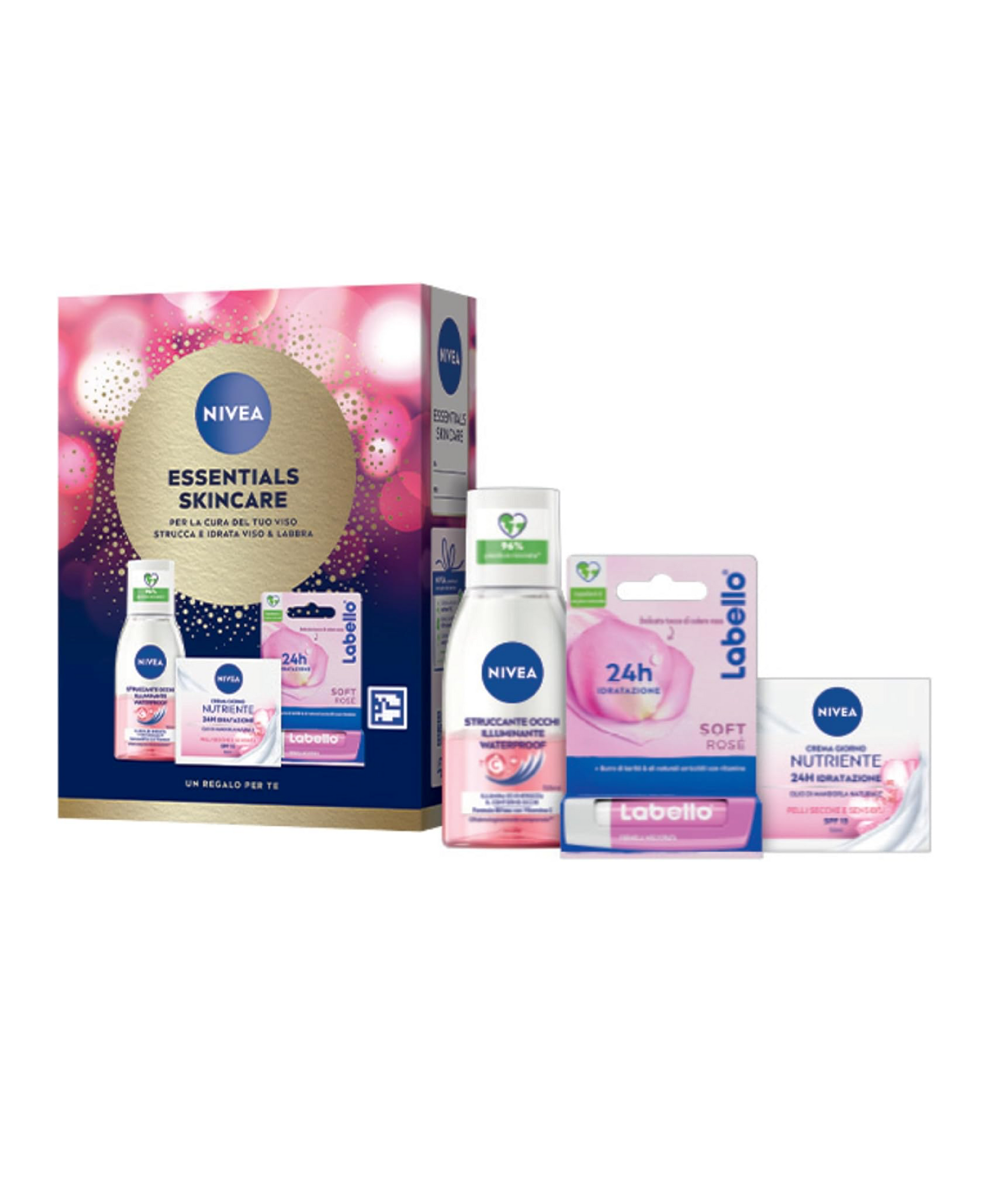 NIVEA Essentials Skincare Cofanetto – Struccante, Crema Giorno + Labello
