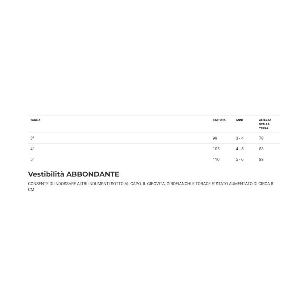 Il vestito da Pupazzo di Neve è disponibile in 3 taglie, dalla 3ª alla 5ª.