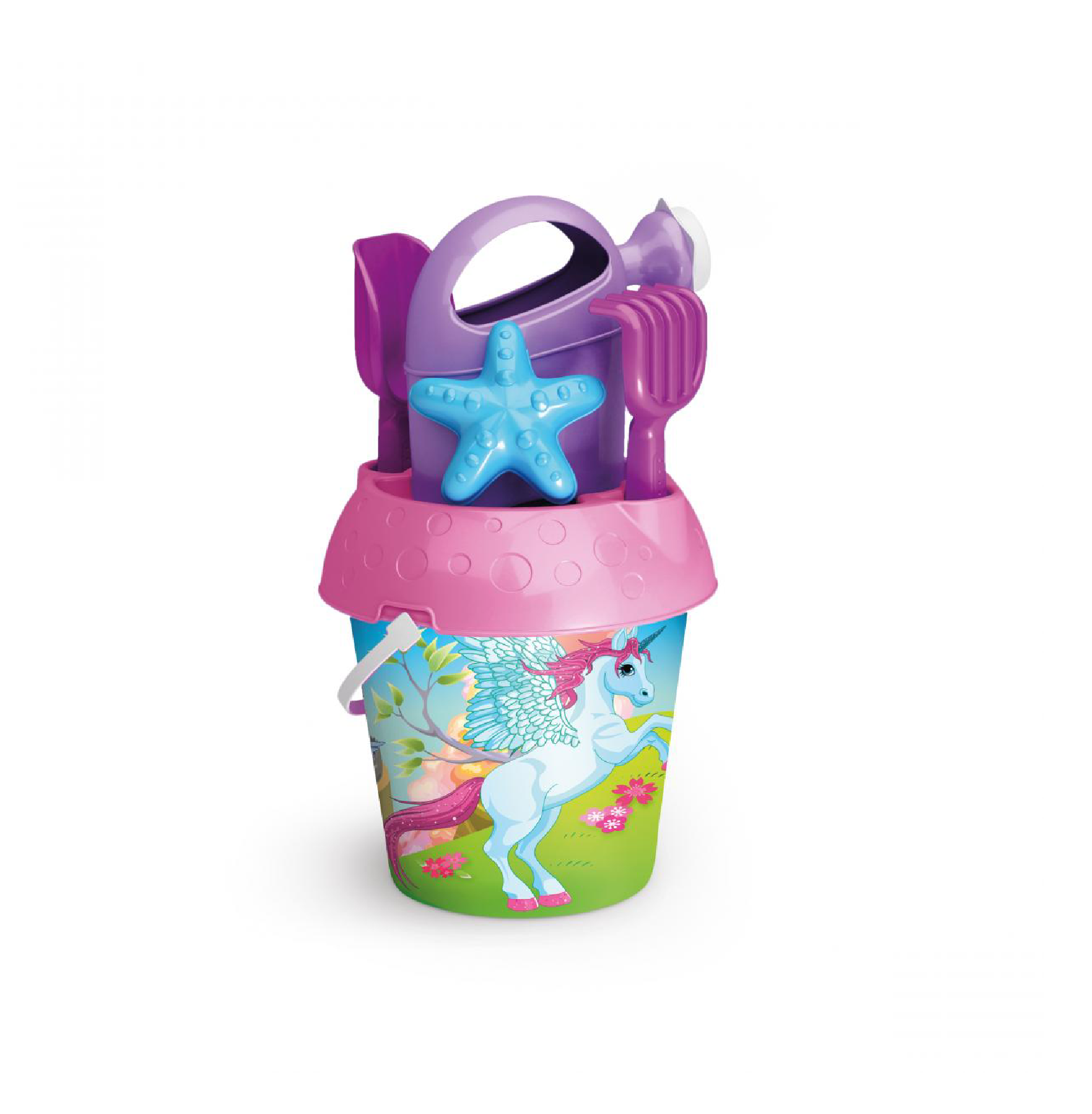 Il set secchiello Magic Unicorn con innaffiatoio è il compagno ideale per i giochi estivi dei bambini. Con il suo design vivace e le decorazioni a tema unicorno, rende ogni momento all’aperto ancora più magico. Realizzato in plastica resistente, il secchiello da 18 cm è perfetto per costruire castelli di sabbia o trasportare acqua. L’adorabile innaffiatoio aggiunge ulteriore divertimento, rendendolo un gioco ideale per il mare, il giardino o anche la vasca da bagno. Un regalo creativo che stimola la fantasia dei più piccoli.