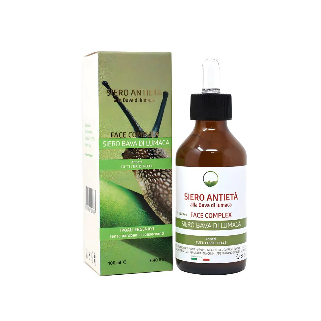 Il Face Complex Siero Antietà alla Bava di Lumaca è un trattamento concentrato studiato per contrastare efficacemente i segni dell’invecchiamento cutaneo. La sua formula ipoallergenica è adatta anche alle pelli più sensibili, mentre la bava di lumaca, ricca di allantoina, collagene, elastina e vitamine, favorisce il rinnovamento cellulare, idrata profondamente e migliora l’elasticità della pelle.