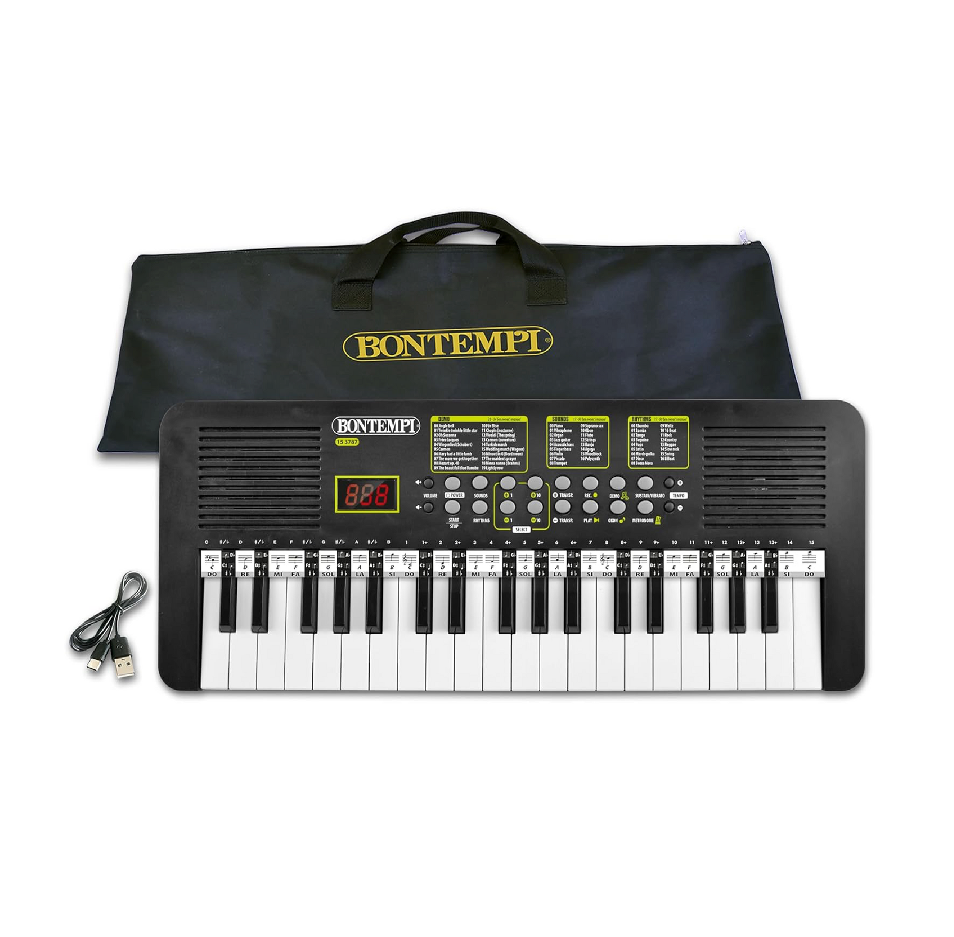 Tastiera digitale PRO a 37 tasti modello 3787, progettata per offrire un’esperienza musicale completa e intuitiva. Grazie al passo da 2 cm tra i tasti, è ideale per l’apprendimento e la pratica quotidiana.