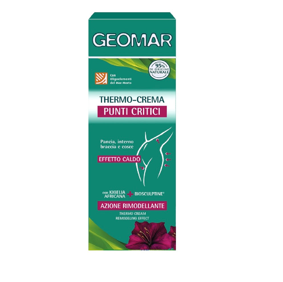 Geomar Thermo Crema Punti Critici Romodellante è un trattamento specifico "effetto caldo" per contrastare il rilassamento cutaneo nelle zone critiche del corpo, come interno braccia, pancia, fianchi e cosce. Ideale per chi ha subito un dimagrimento importante, una gravidanza o per chi nota i segni dell'invecchiamento, questa crema aiuta a migliorare l'elasticità dei tessuti e a tonificare la pelle.