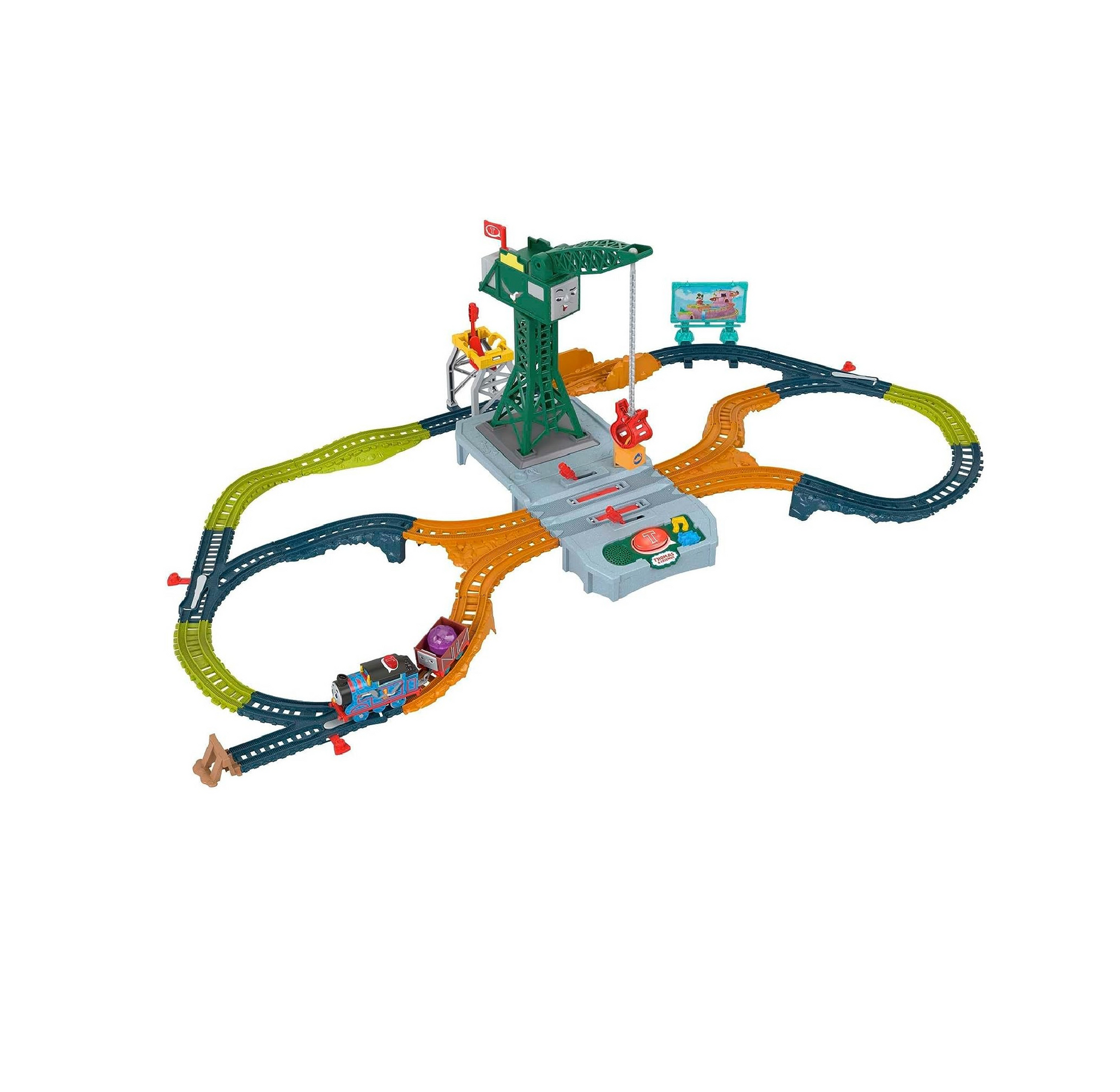 Vivi un'emozionante avventura sull'Isola di Sodor con il Trenino Thomas Pista Cranky! Questo set coinvolgente non solo include la locomotiva Thomas alimentata a pile, ma anche Cranky la Gru, che ruota a 360 gradi e ha un artiglio funzionante per caricare e scaricare il carico. Con una pista lunga 4,4 m e oltre 60 melodie e suoni ferroviari, il gioco diventa ancora più coinvolgente. Inoltre, le 11 aree di gioco azionate manualmente stimolano la creatività dei bambini, mentre il Vagone Combina Guai aiuta Thomas a completare il suo viaggio. Collega questo set ad altre piste de Il Trenino Thomas per espandere le avventure!