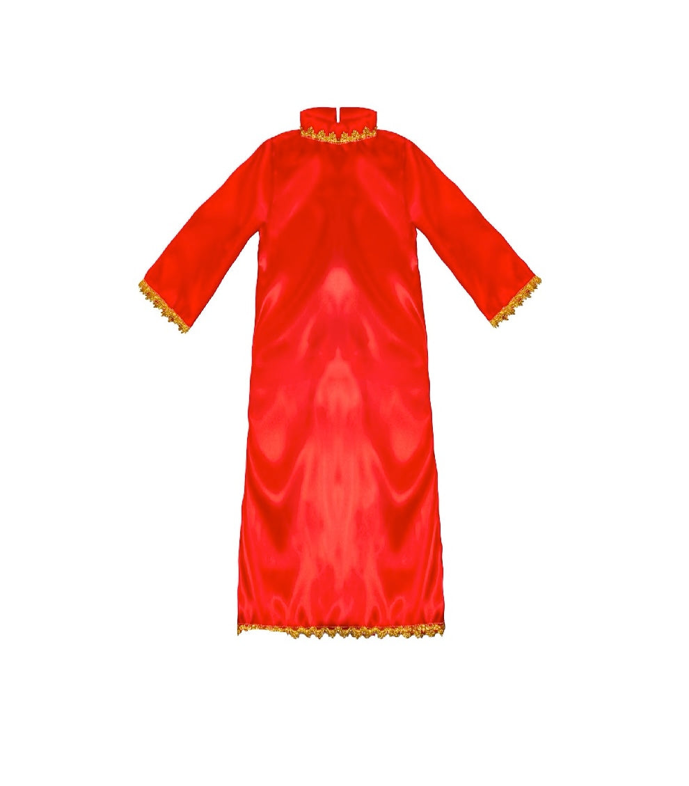 La tunica rossa con passamaneria per bambino/a è un costume elegante e raffinato, perfetto per cerimonie, recite teatrali, rievocazioni storiche o eventi a tema. Realizzata in pregiato tessuto raso, si distingue per la passamaneria dorata decorativa, che aggiunge un tocco scenografico e solenne. Un capo scenico che unisce eleganza e praticità, pensato per lasciare il segno in ogni occasione.