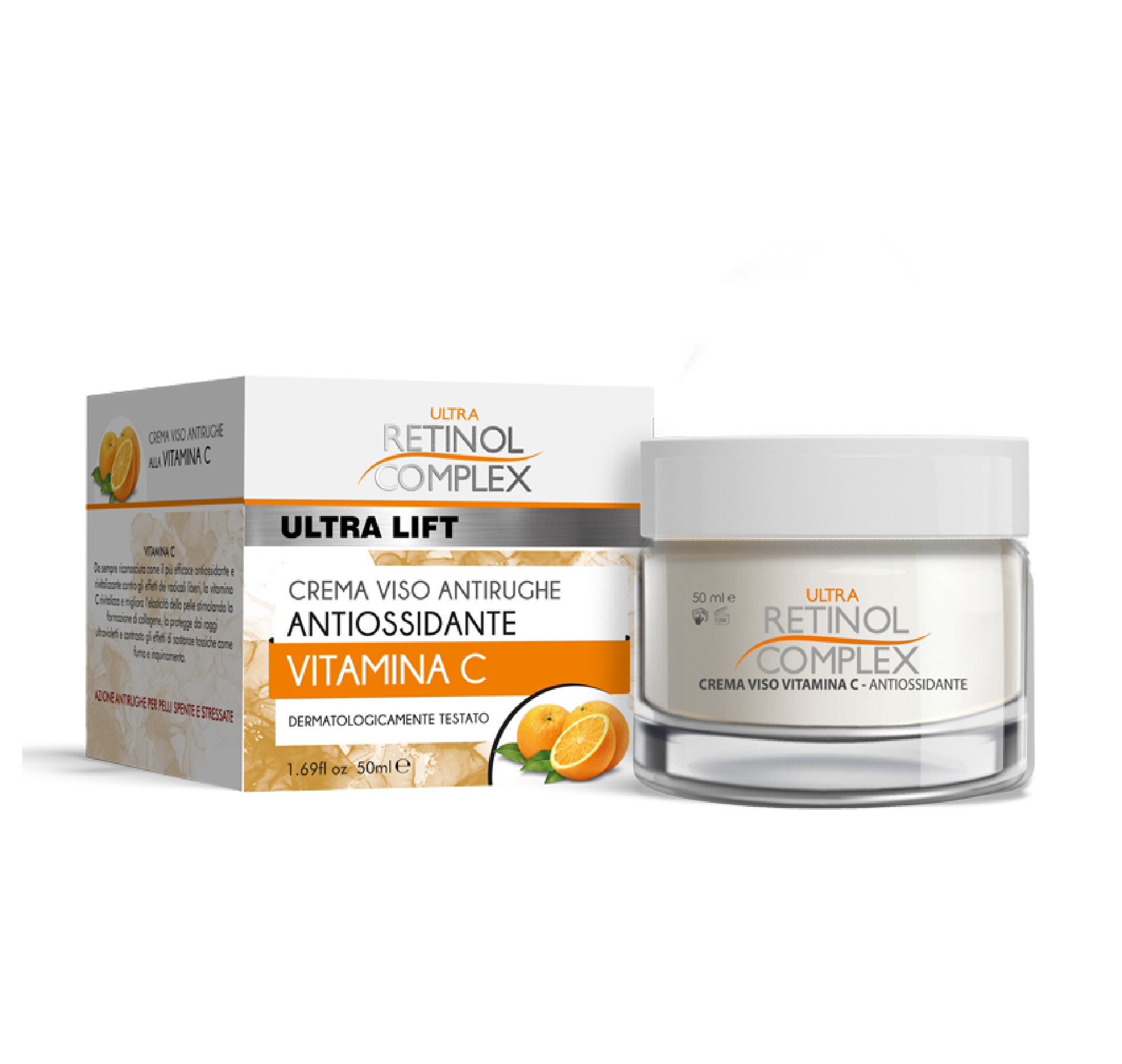 Illumina e proteggi la tua pelle ogni giorno con la crema viso Ultra Lift alla vitamina C di Ultra Retinol Complex. Un trattamento antirughe e antiossidante che combatte i segni del tempo, stimola la luminosità naturale del viso e protegge la pelle dalle aggressioni esterne.