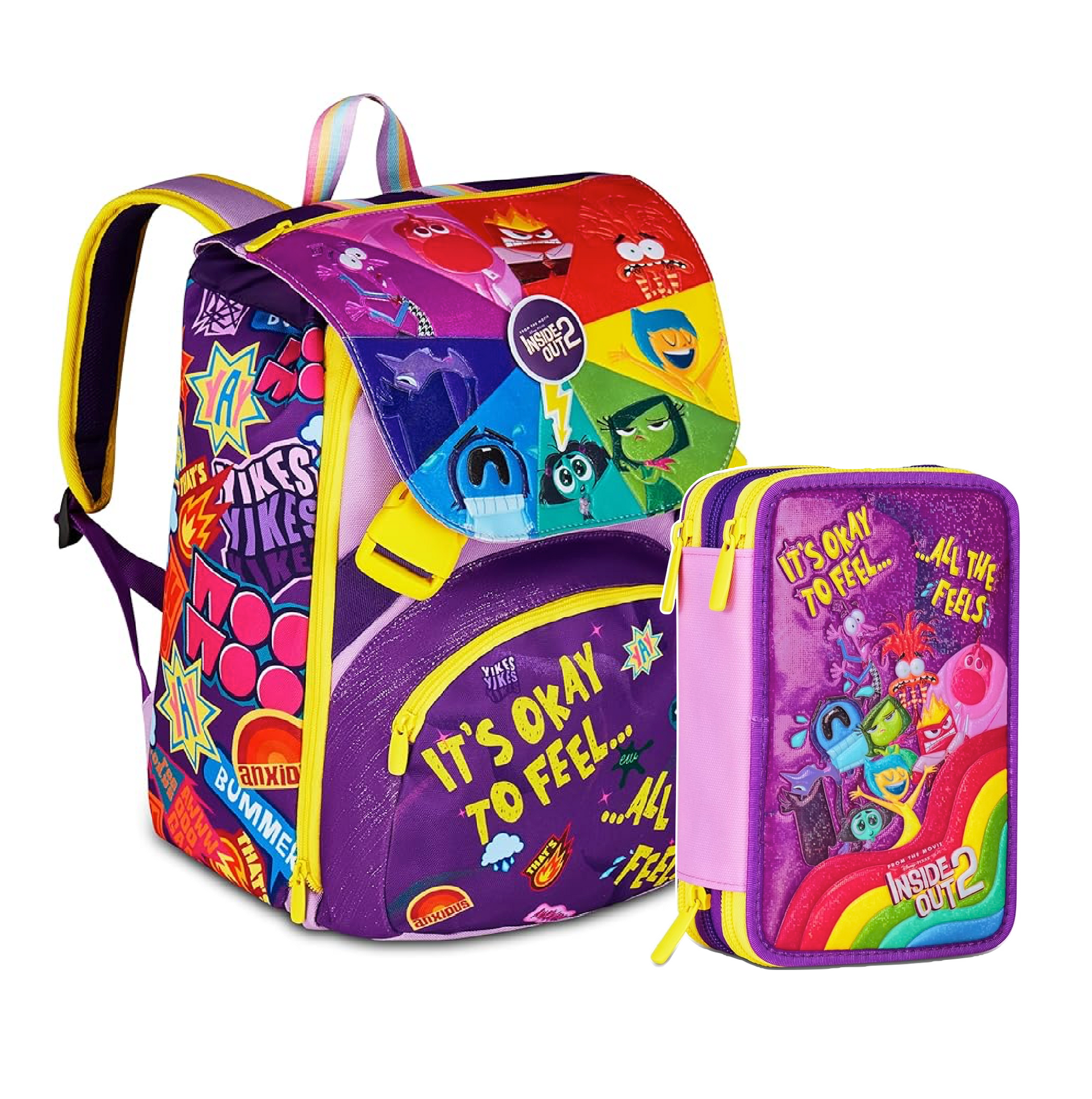 Affronta ogni giornata scolastica con le emozioni di Inside Out 2! Lo zaino Seven Big sdoppiabile è la scelta perfetta per i bambini che amano il mondo Disney Pixar e hanno bisogno di uno zaino capiente, resistente e super colorato.