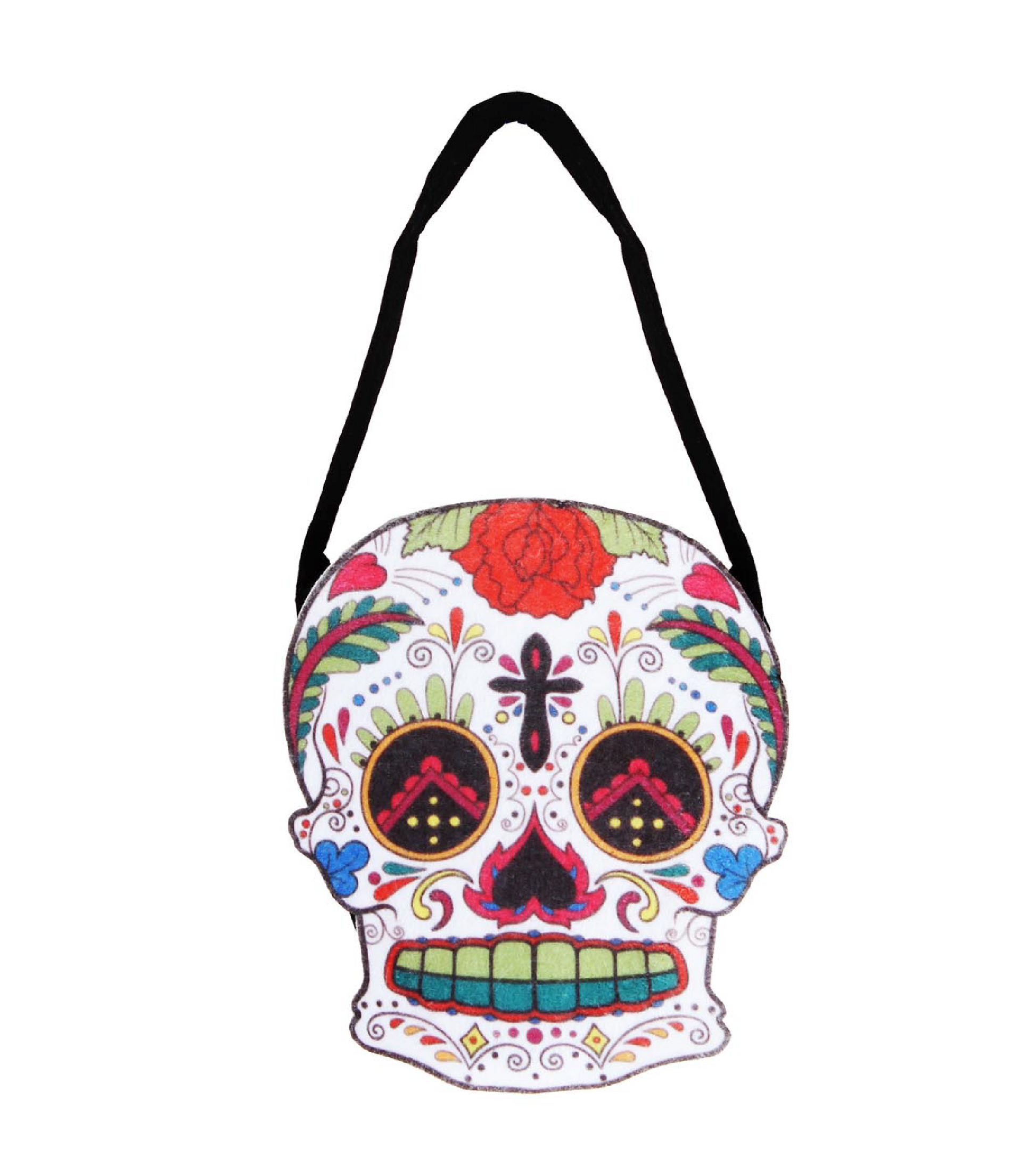 Perfetta per bambine e adulte, questa borsetta in taglia unica è ideale per completare costumi ispirati al Día de los Muertos o semplicemente per aggiungere un tocco vivace e originale al look di Halloween.