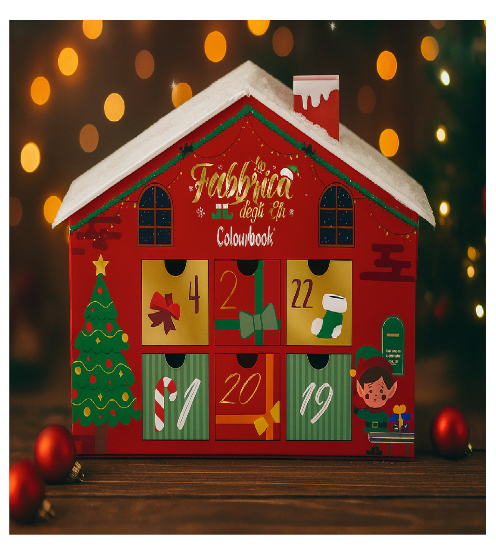 Il Calendario dell’Avvento Colourbook è un’esclusiva natalizia pensata per sorprendere bambini, studenti e amanti della cancelleria con 24 articoli unici e divertenti. La sua struttura a forma di casetta, curata nei minimi dettagli, racchiude un mix di gadget, articoli di cartoleria e accessori natalizi, perfetti per rendere speciale l’attesa del Natale.