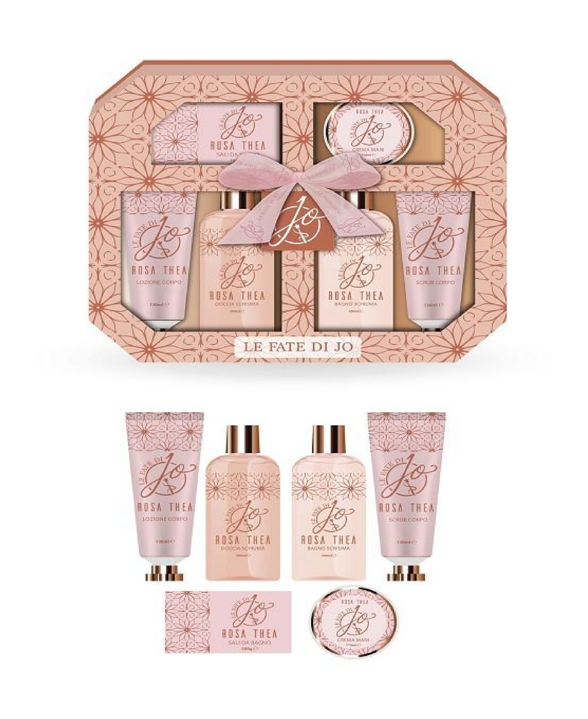 Regala un momento di puro relax con il cofanetto Le Fate di Jo Rosa Thea, una collezione di prodotti dedicati alla cura e alla bellezza del corpo. Il set include shower gel, body scrub, crema corpo, crema mani e sali da bagno, tutti arricchiti dall’inconfondibile fragranza Rosa Thea, delicata e femminile. Ogni prodotto è pensato per idratare e profumare la pelle, trasformando il bagno in un’esperienza sensoriale unica. Il packaging elegante e raffinato lo rende un’idea regalo perfetta per ogni occasione, capace di conquistare con il suo profumo romantico e la sua cura nei dettagli.