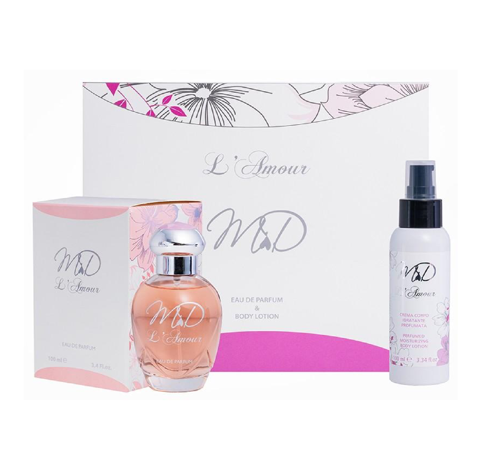 Scopri il fascino irresistibile di Md Amour, il set regalo ideale per una donna speciale. Questo elegante cofanetto contiene un Eau de Parfum (EDP) e una Body Lotion, entrambi caratterizzati da una fragranza orientale e floreale che seduce e conquista i sensi. L'intensità della fragranza avvolge la pelle con note ricche e sensuali, mentre la crema corpo nutre, idrata e lascia la pelle morbida, liscia e delicatamente profumata. Perfetto per ogni occasione, questo set rappresenta il regalo ideale per celebrare momenti speciali con eleganza e raffinatezza
