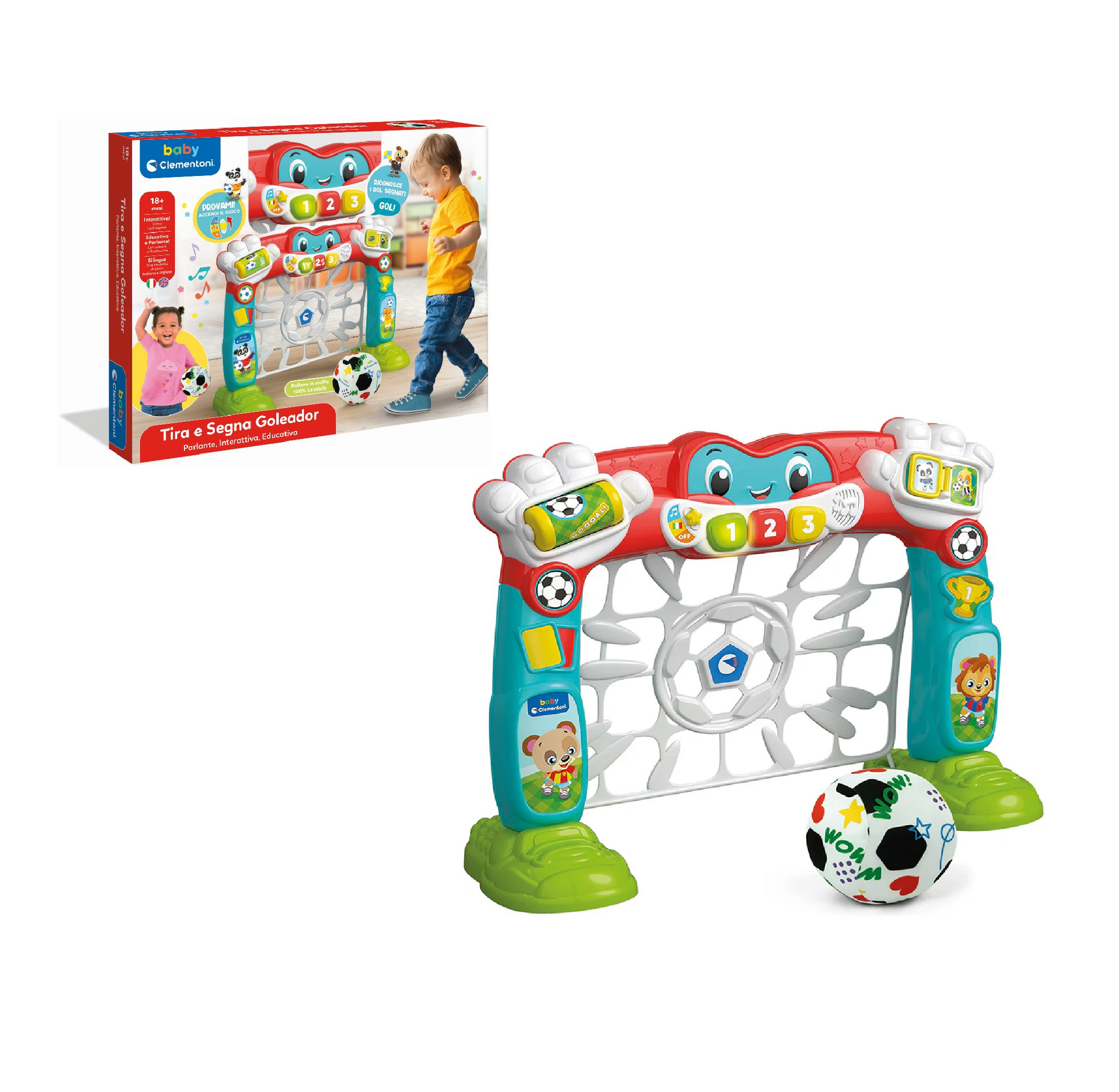 La Porta Calcio Tira e Segna Goleador è il gioco ideale per i giovani calciatori in erba! Con questa porta interattiva, i bambini potranno divertirsi a segnare gol, mentre il gioco conta ogni colpo e accompagna l'azione con canzoncine e filastrocche. La modalità bilingue permette ai bambini di avvicinarsi all'inglese mentre giocano, rendendo l'esperienza ancora più educativa. Un compagno di giochi perfetto per imparare, divertirsi e stimolare l'amore per lo sport fin da piccoli.