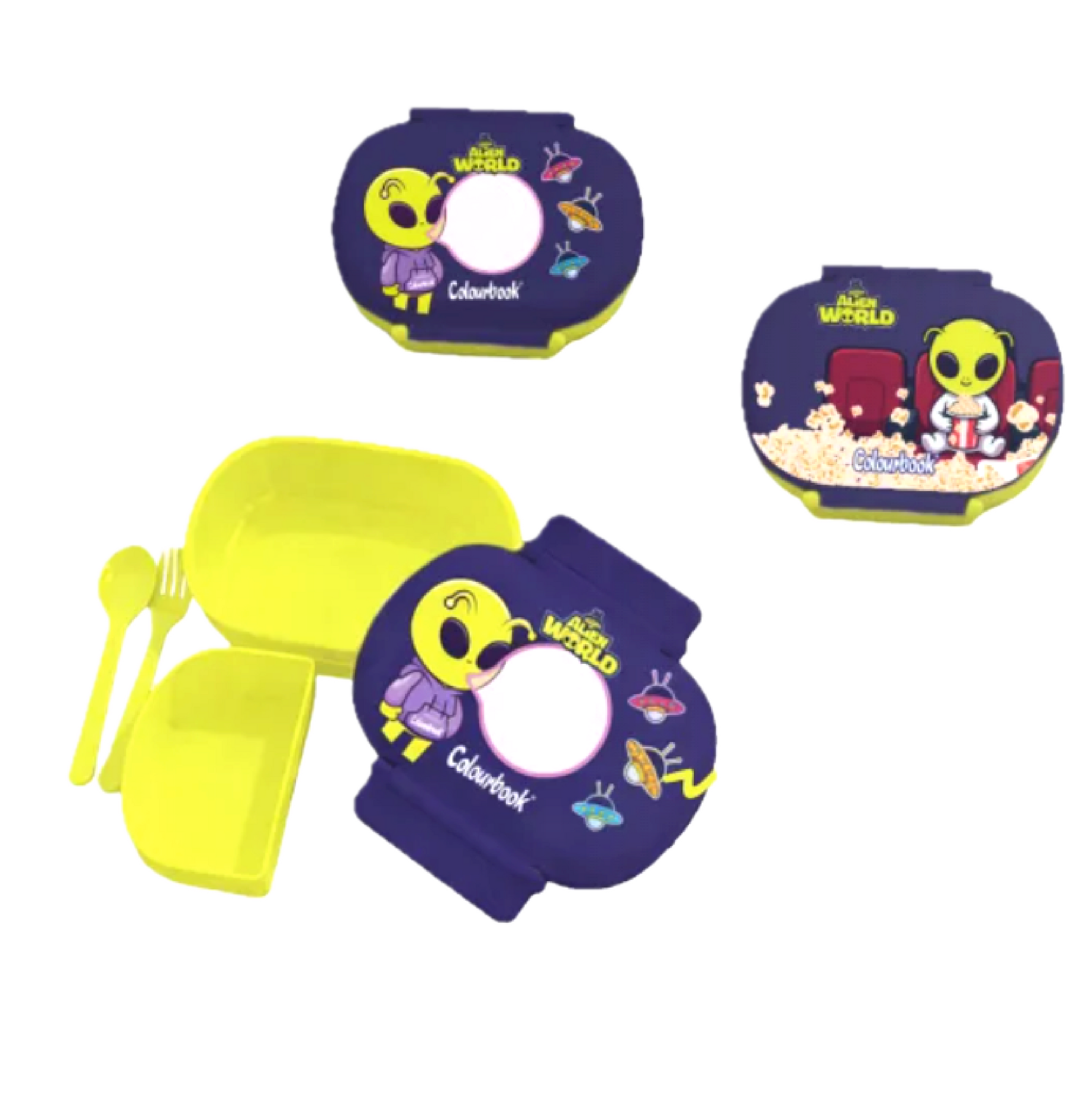 Include posate complete, forchetta e coltello, sempre pronte all’uso, rendendo il porta pranzo completo e funzionale. Il design a tema alieno Colourbook aggiunge un tocco di fantasia e originalità, trasformando ogni momento a tavola in un’esperienza divertente e colorata.