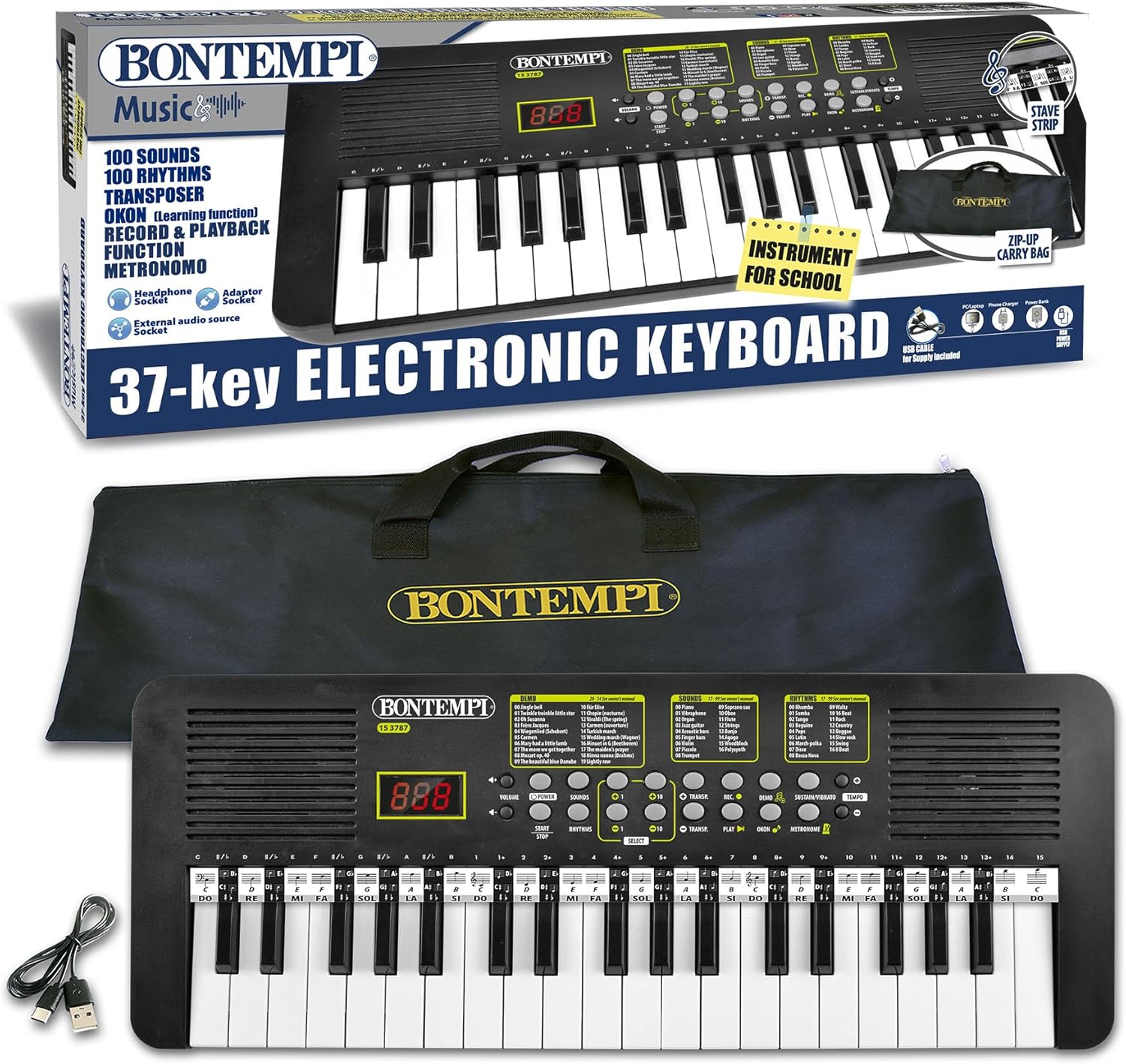 Tastiera digitale PRO a 37 tasti modello 3787, progettata per offrire un’esperienza musicale completa e intuitiva. Grazie al passo da 2 cm tra i tasti, è ideale per l’apprendimento e la pratica quotidiana.