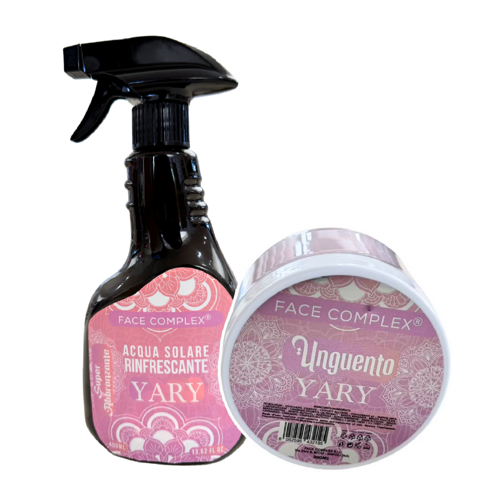 Il set abbronzante Yary include l’Acqua Solare Rinfrescante 400ml e l’Unguento Super Abbronzante 200ml, entrambi arricchiti con una delicata profumazione. Questa combinazione è pensata per chi desidera ottenere un’abbronzatura intensa, uniforme e duratura, mantenendo la pelle idratata e protetta.