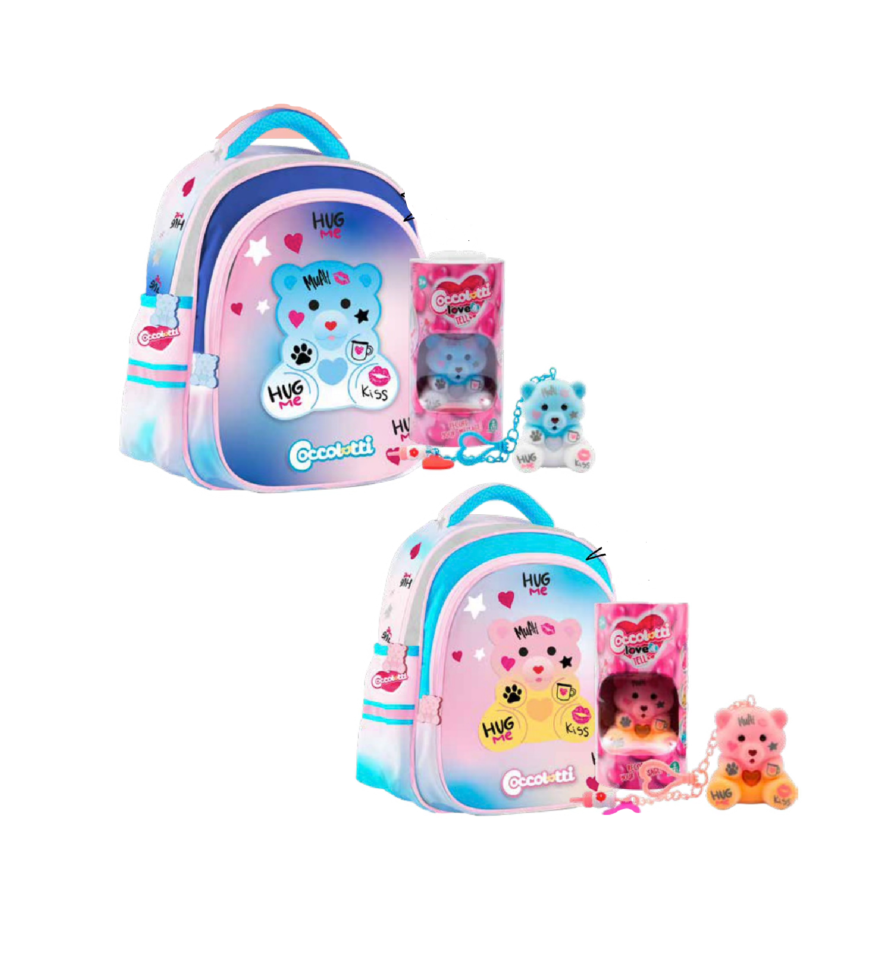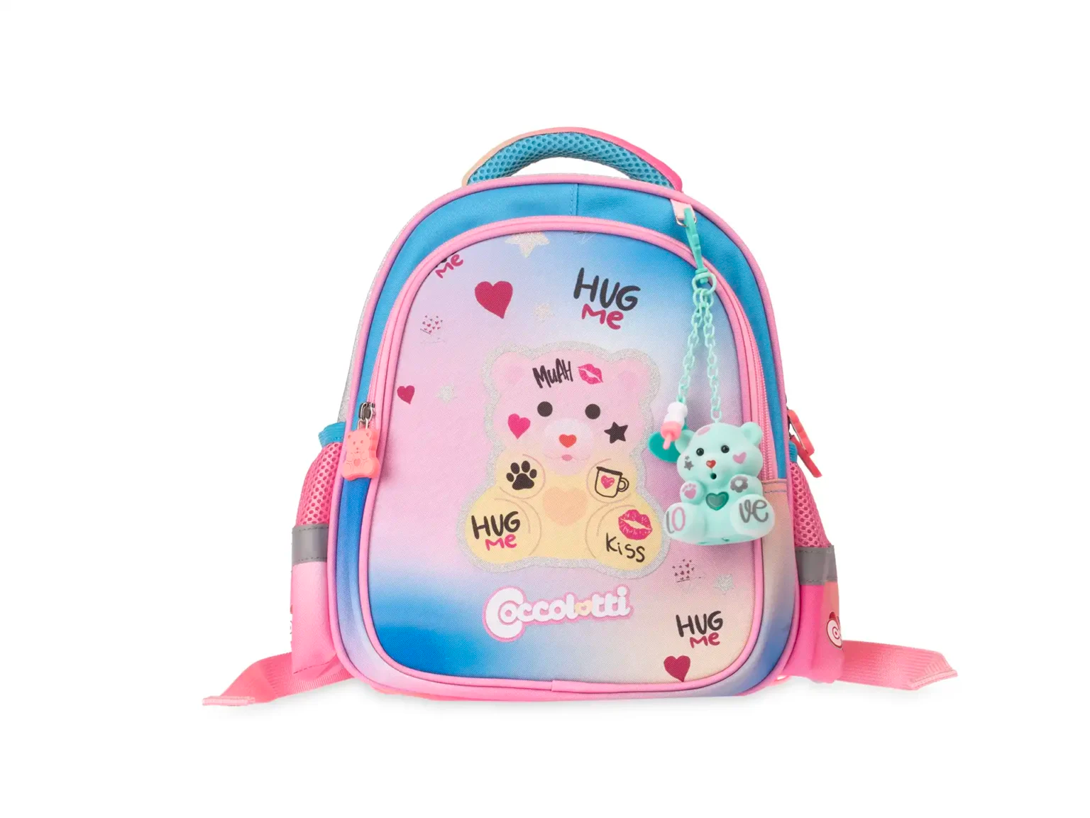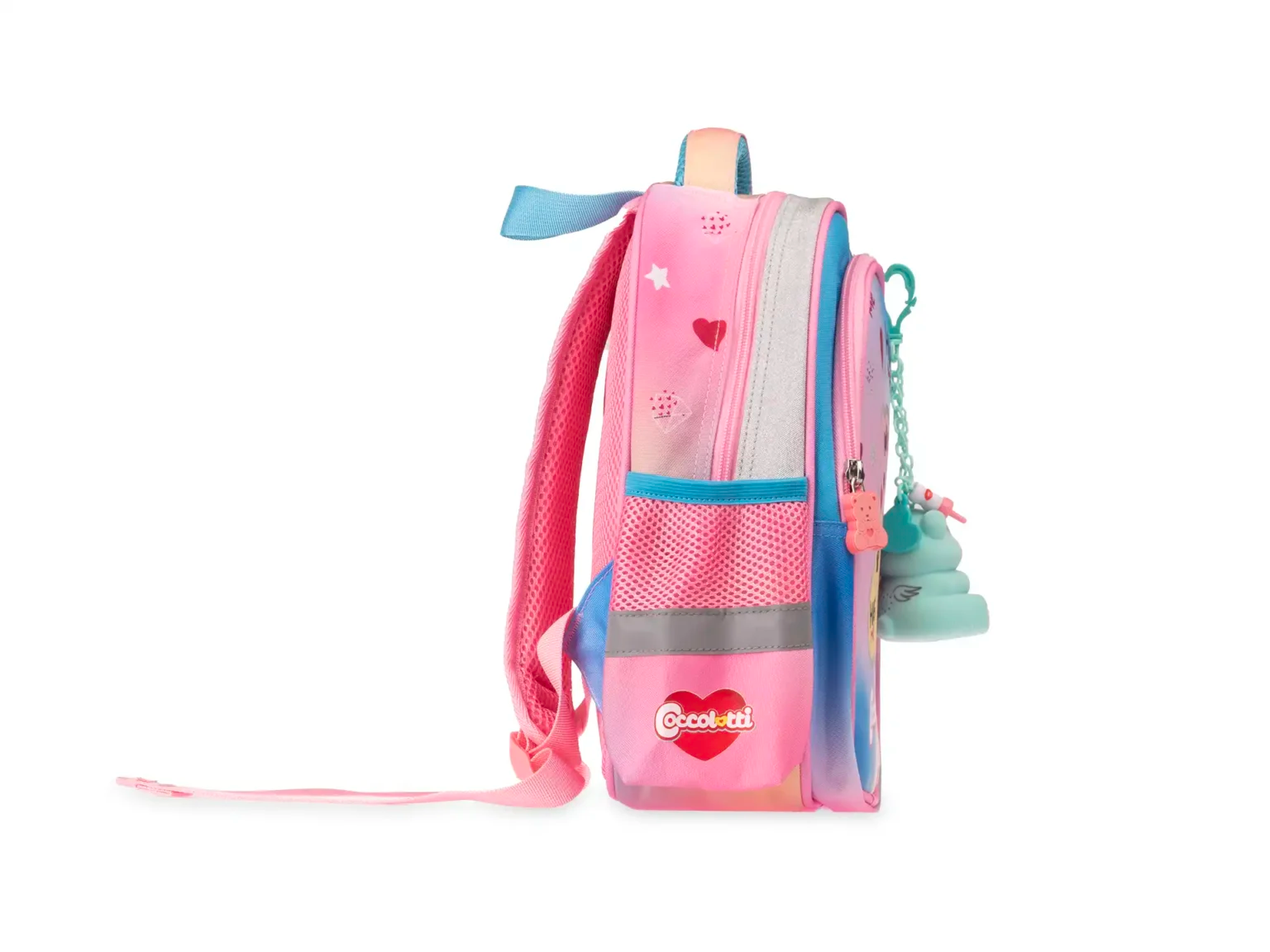 Con lo zaino asilo Colourbook per Coccolotti, ogni giorno sarà una nuova avventura all’insegna della tenerezza e del colore. Disponibile in due dolcissime varianti – rosa e azzurro o rosa e blu – è realizzato in tessuto glitterato con un elegante inserto argento che lo rende unico e scintillante.